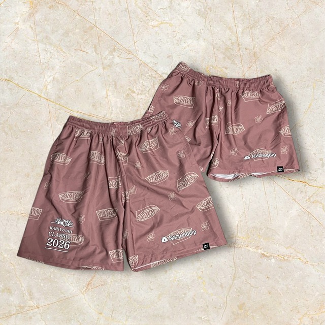 【2026KARIYUSHIクラシックドライパンツ/タルト模様】ポケット付き! 2026年に沖縄で開催されたアルティメット大会KARIYUSHIクラシックの記念パンツです。 サラサラとしたドライ素材は履き心地抜群!ポケット付きズボンはかなり便利です! サイズは、 膝丈サイズ ミディアム丈サイズ(膝丈サイズから1インチ短くしたもの) ショート丈サイズの3種類をご用意しております! ※写真は膝丈サイズとショート丈サイズです。 数量限定となっておりますので、お早めに!