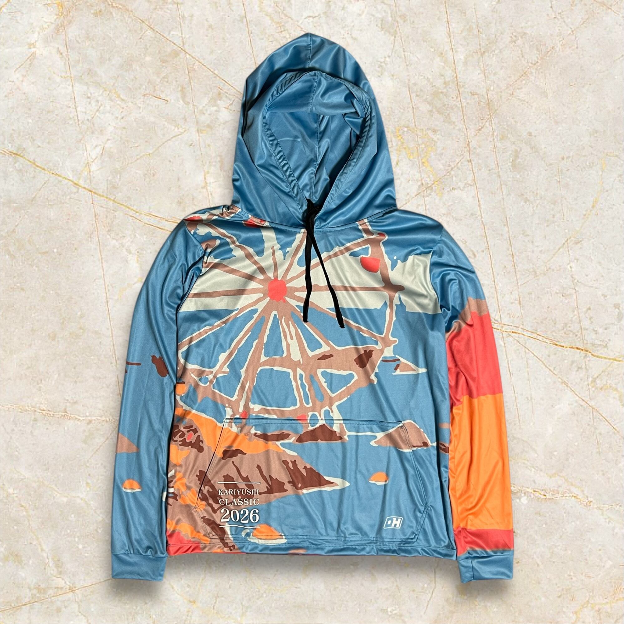 2026年に沖縄で開催されたアルティメット大会KARIYUSHIクラシックの記念フーディです。